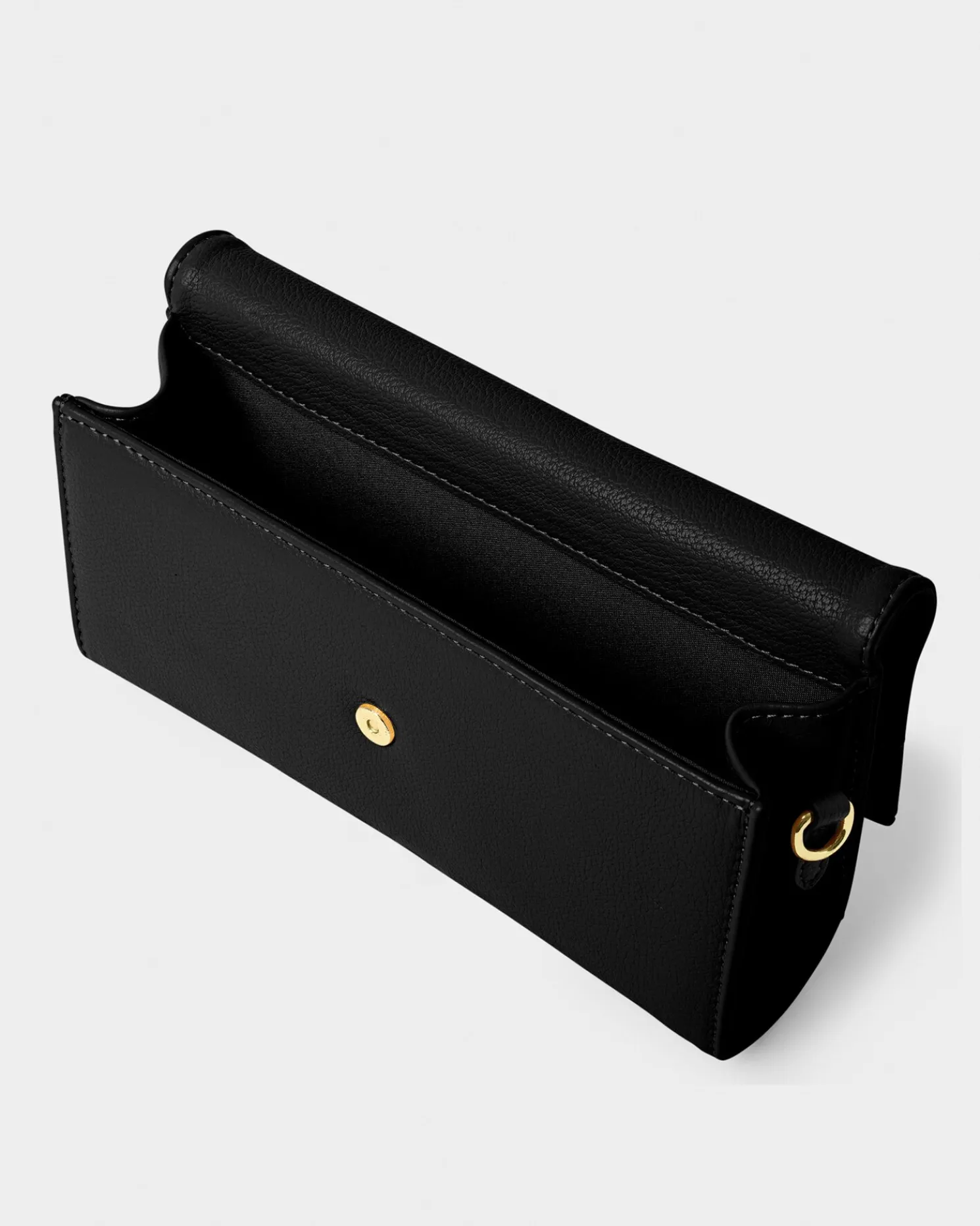 Our Glasses and Card Holder Travel Case in Black features an elevated curved design, with space for a pair of glasses and a removable card holder for organisation on the go. Complete with D-rings on either side for effortlessly attaching our interchangeable bag straps and wearing as a crossbody, this versatile style will quickly become your new everyday essential.