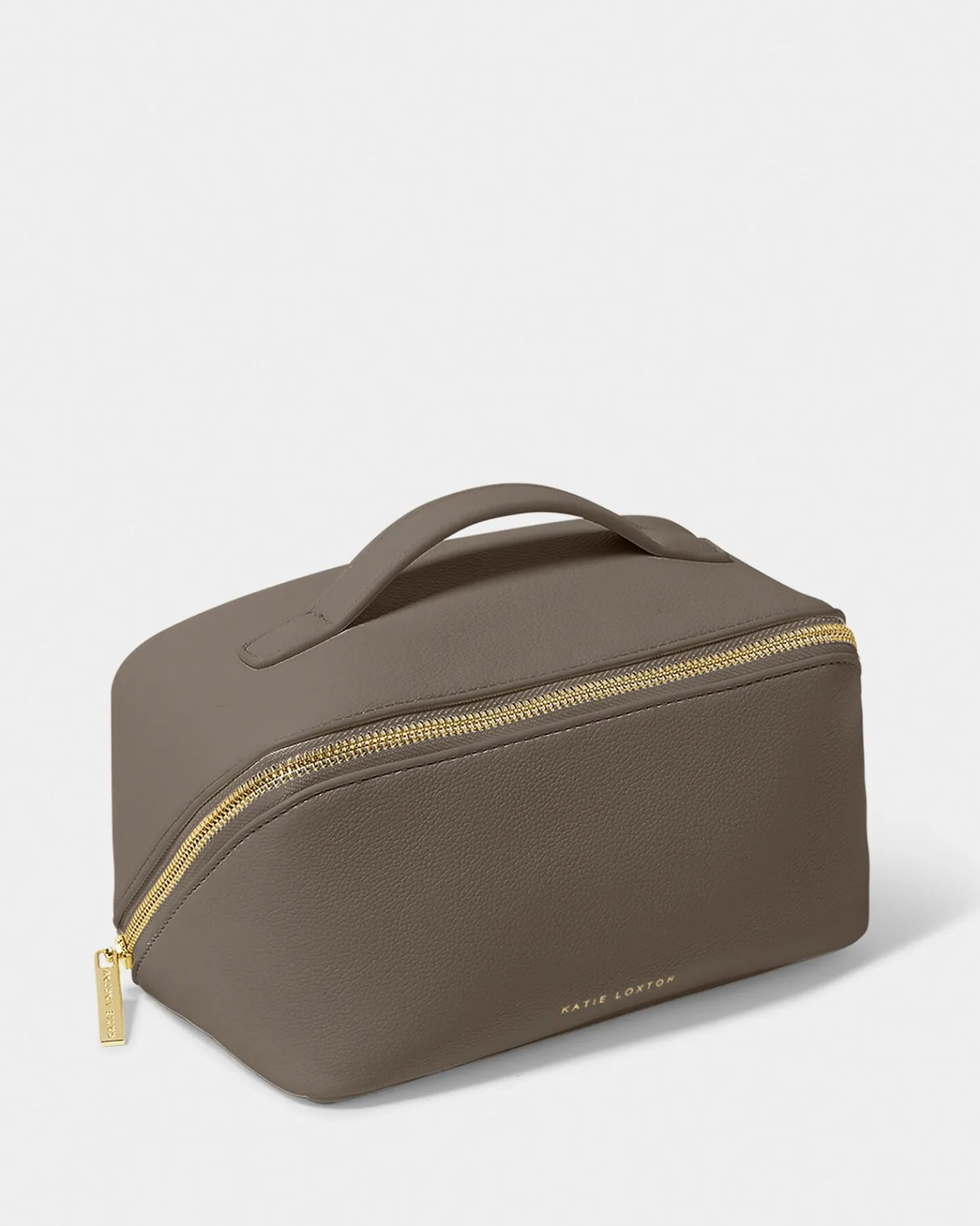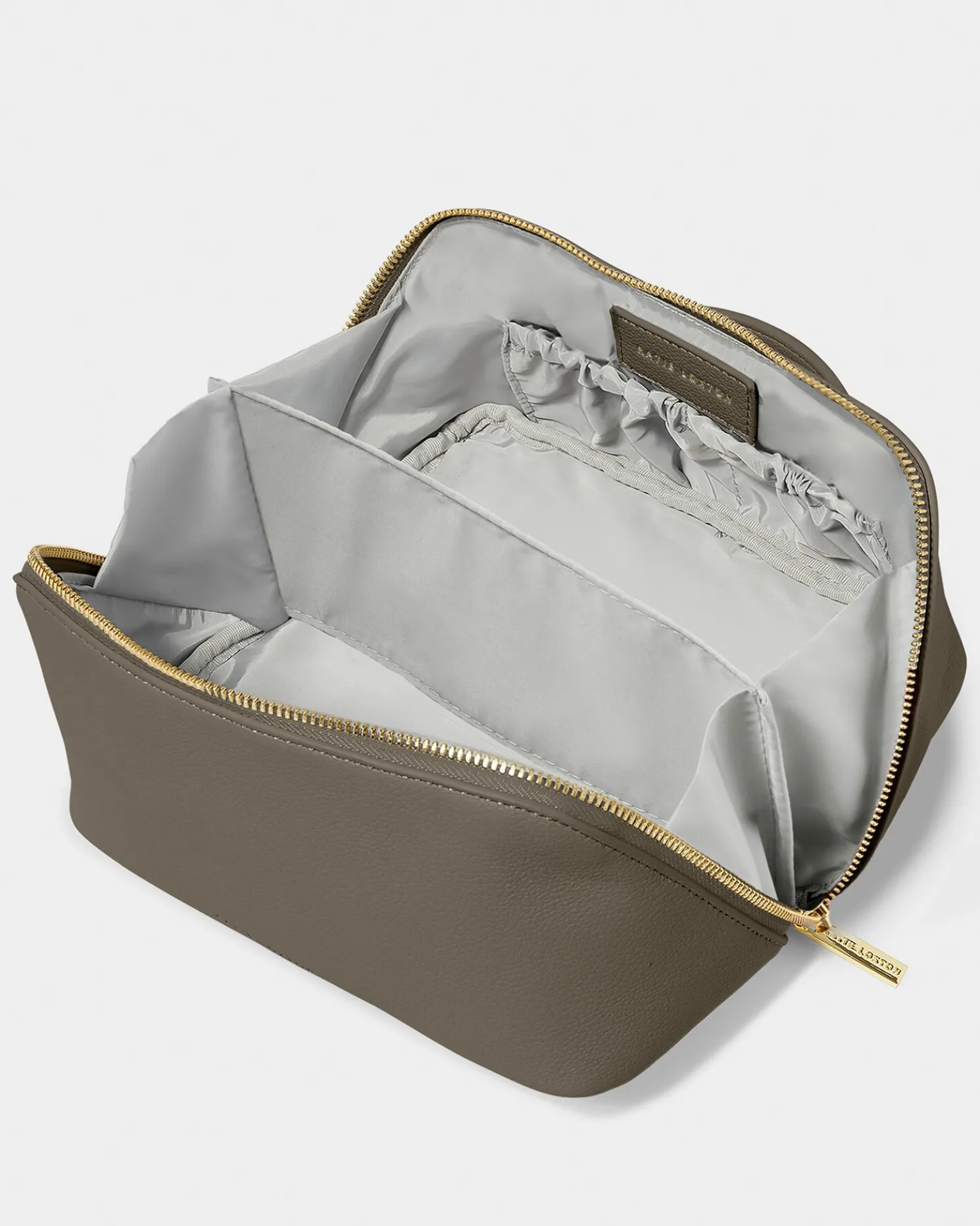 Level up your get-ready routine with our Medium Makeup And Wash Bag in Mink. Its zip-around closure allows effortless access to your belongings, while its wipeable lining means there’s no need to worry about spillages. Designed for makeup enthusiasts, this bag lays flat on any surface, revealing centre dividers and pockets for seamless organisation. It’s the perfect blend of style and function.