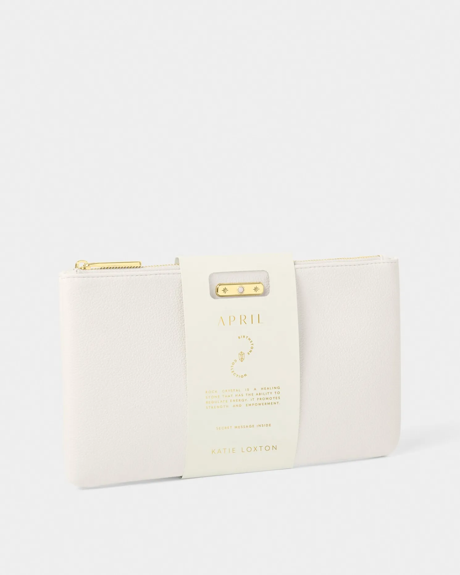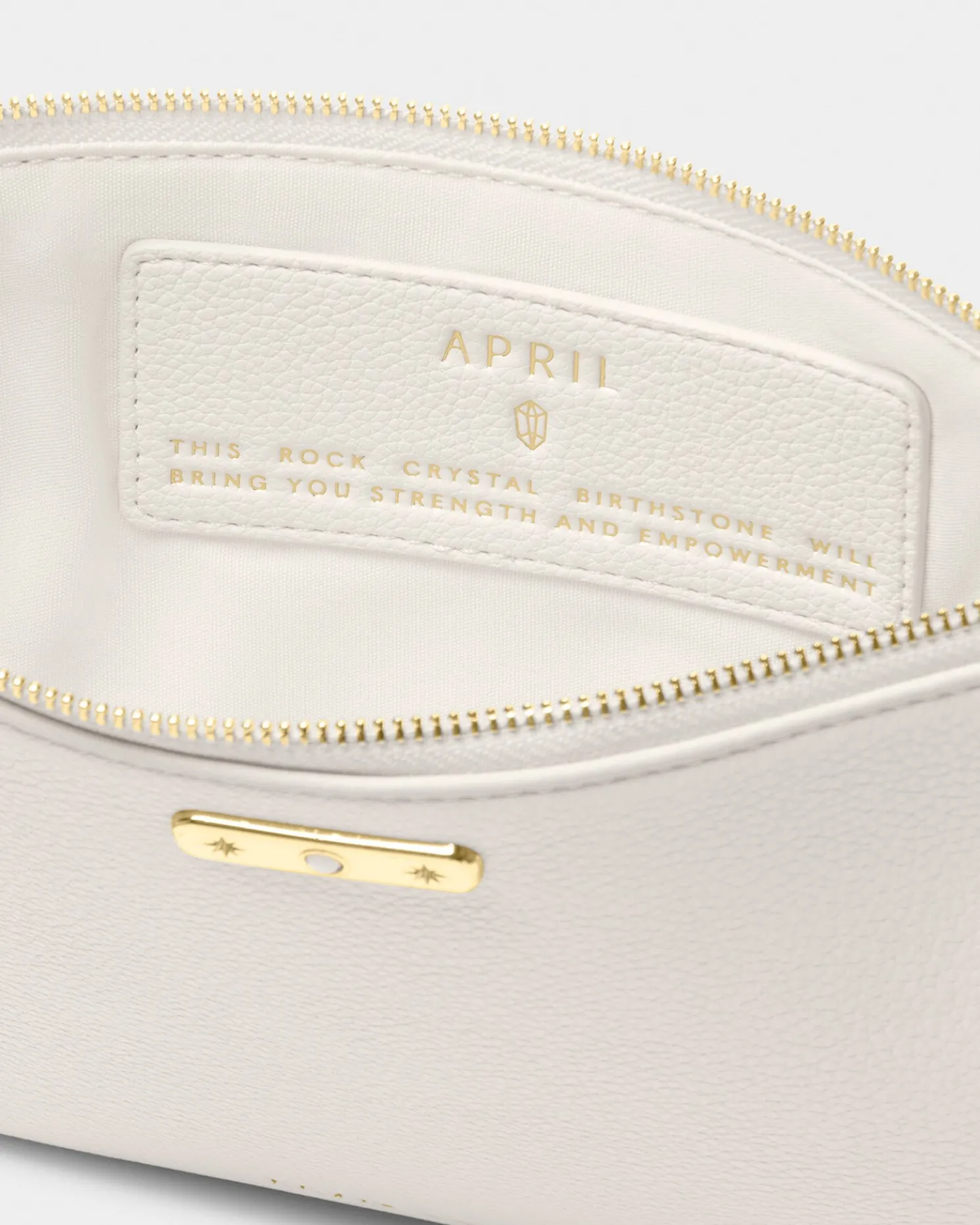 Our ‘April’ Birthstone Pouch features custom gold-tone hardware, beautifully set with the month’s real semi-precious stone, Rock Crystal. Inside the zip closure, you’ll discover a hidden message and individual traits that perfectly represent the birthday girl. For the ideal gift, pair this pouch with the matching Birthstone Bracelet and Keyring.