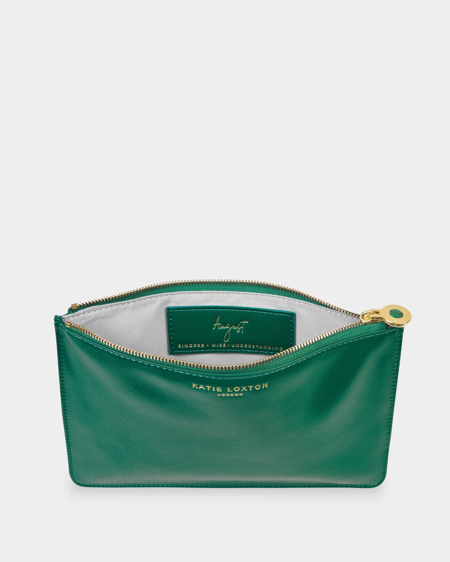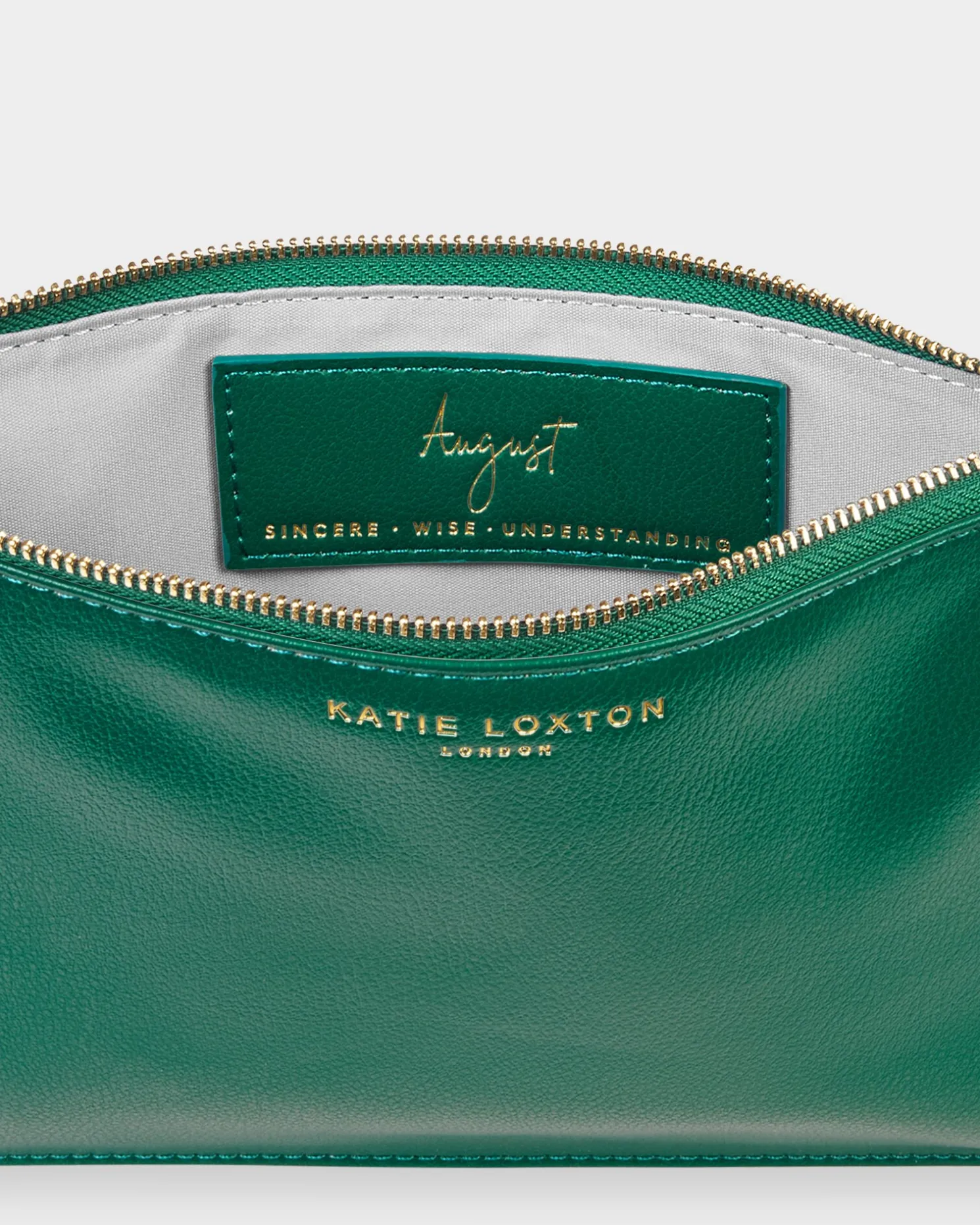Give the August birthday girl the gift of style this year with our stunning August Birthstone Perfect Pouch which features a real semi-precious Aventurine stone! Designed in gorgeous soft, green vegan leather, this pouch is big enough to fit all her day-to-day essentials, while still being compact enough to carry on her birthday night out! Plus, this pouch represents a sincere, wise and understanding nature – it even conceals an engraving of the month to the interior for the perfect surprise!