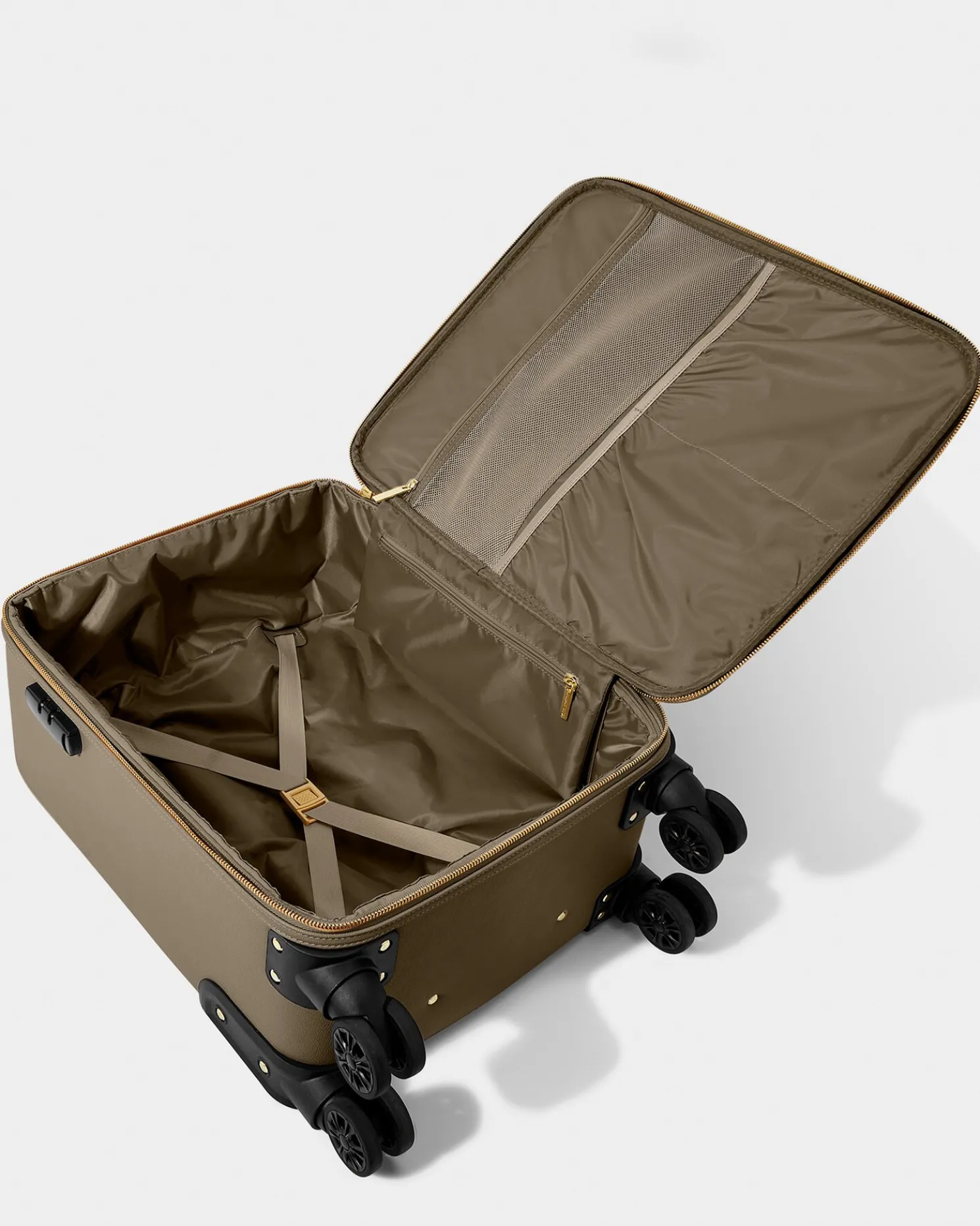 Our Oxford Cabin Suitcase in Mink features a retractable handle and top handle to ensure easy carrying and lifting, and 360-degree smooth-rolling wheels. Inside, you’ll find a mesh zip pocket, two fabric pockets, and compression straps to keep your clothes and accessories organised. For your peace of mind, we’ve also included a combination lock function to keep your belongings safe and secure.