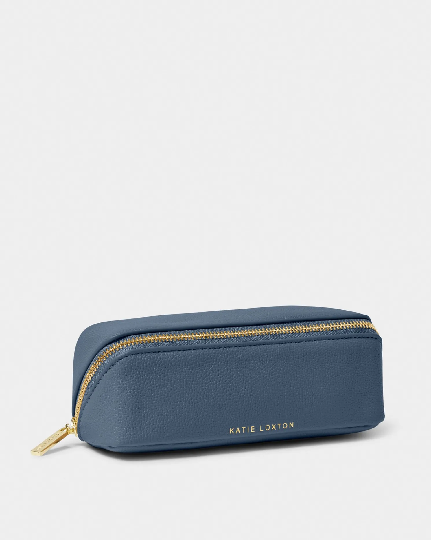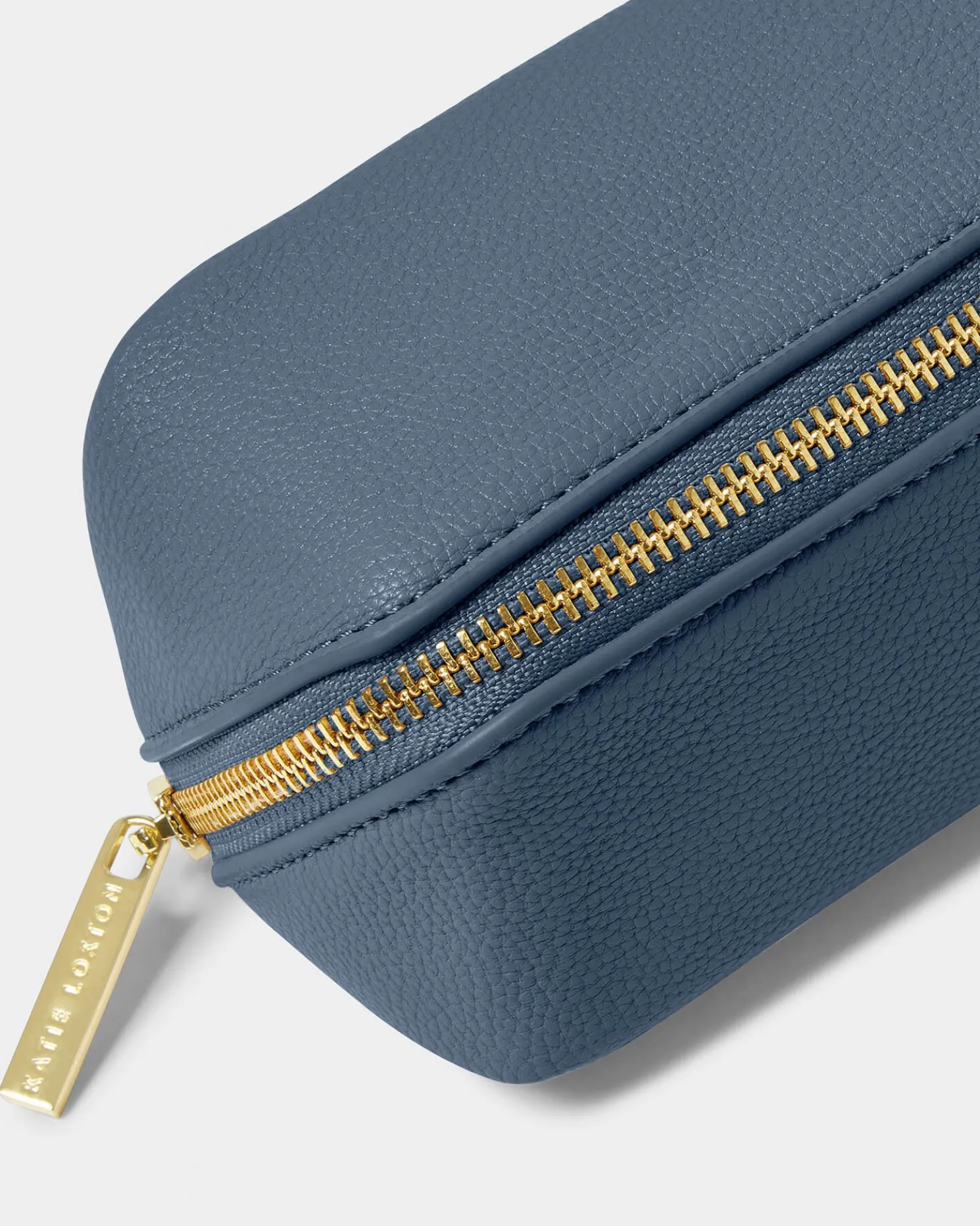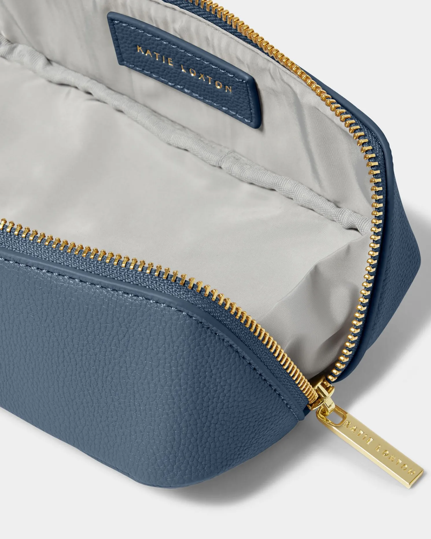 Level up your get-ready routine with our Small Makeup Bag in Navy. Its zip-around closure allows it to fully open and lay flat on any surface, providing easy access to cosmetics. Plus, with its wipeable lining, there’s no need to worry about spillages. This bag is every makeup enthusiast’s dream!