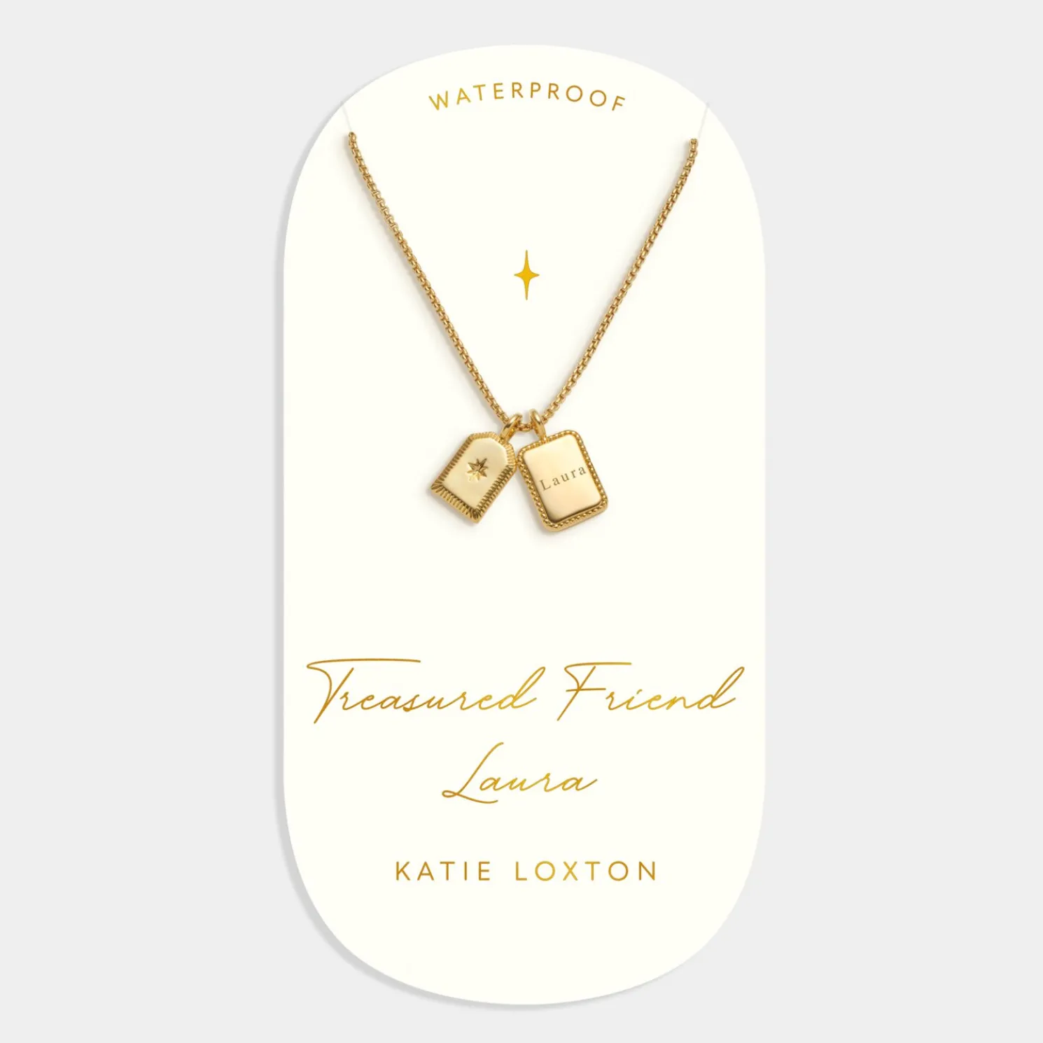 Show your forever friend just how much you mean to them with our thoughtfully designed ‘Treasured Friend’ Waterproof Gold Charm Necklace. Presented on a premium card that is printed with the golden sentiment, this beautiful necklace is designed in durable 18K Gold PVD Coating – meaning it is waterproof, sweat proof and life proof – and holds two rectangle charms.