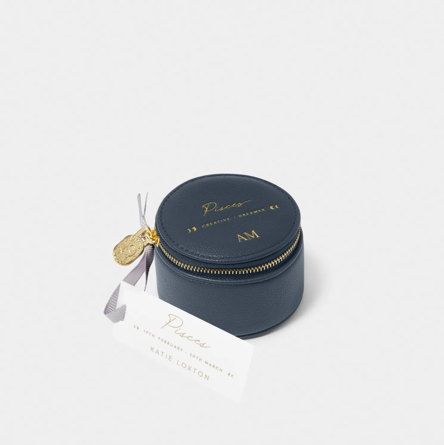 Our ‘Pisces’ Zodiac Jewellery Box in Navy showcases the star sign’s unique traits, ‘Creative’ and ‘Dreamer,’ on the top of the soft vegan leather box, complemented by the gold-tone zip pull which is embossed with the zodiac and matches back to the rest of the collection. Inside, you’ll discover a soft suedette lining with multiple rolls for ring storage and an open compartment for bracelets and necklaces. This jewellery box can be personalised even further with monogrammed initials, making it the perfect gift for every birthday.